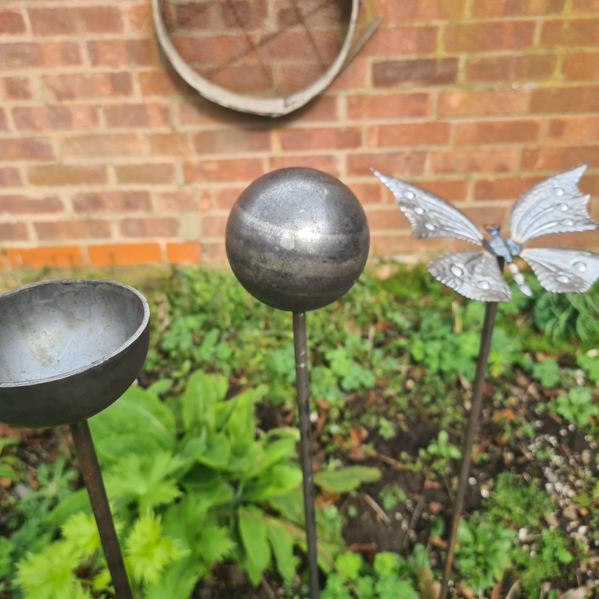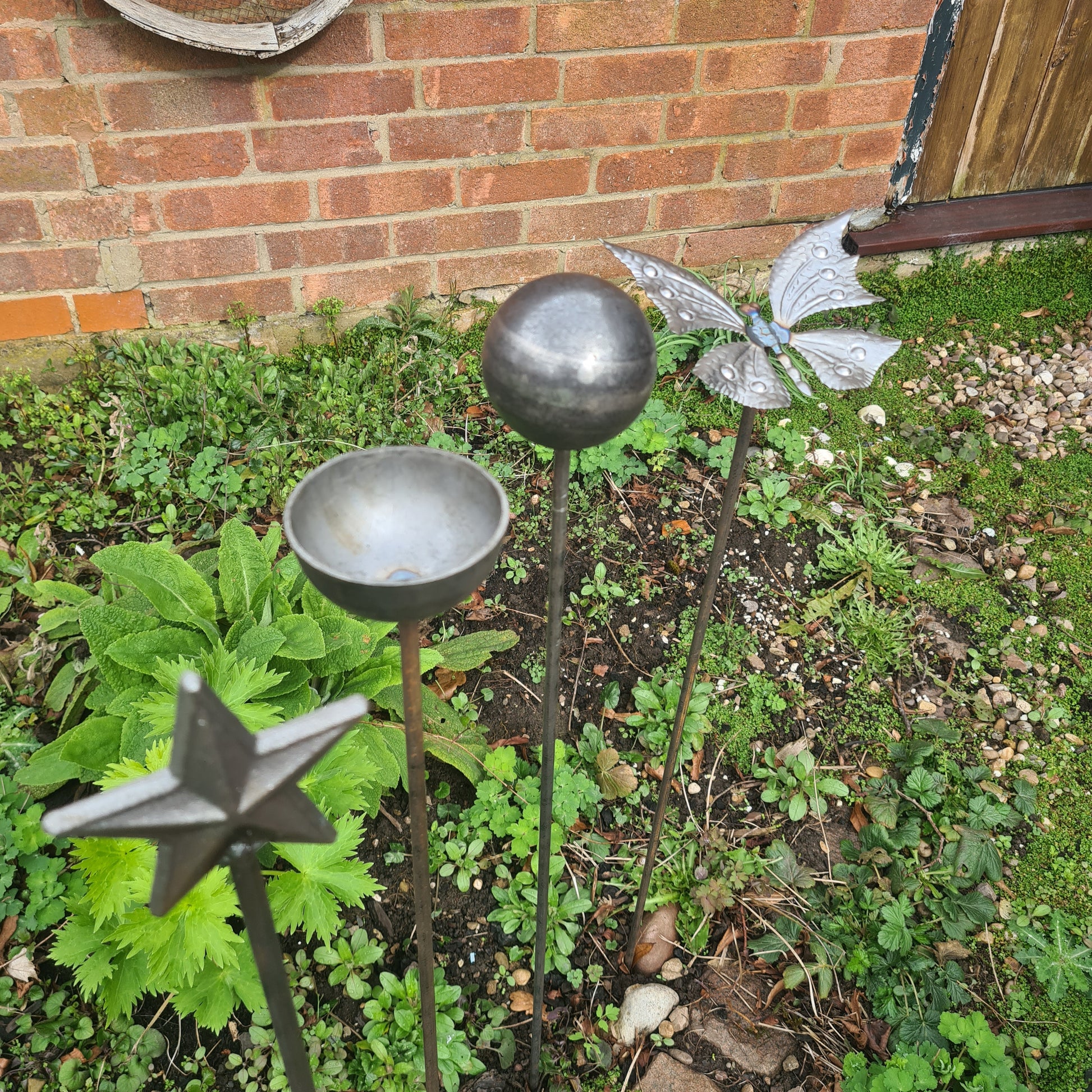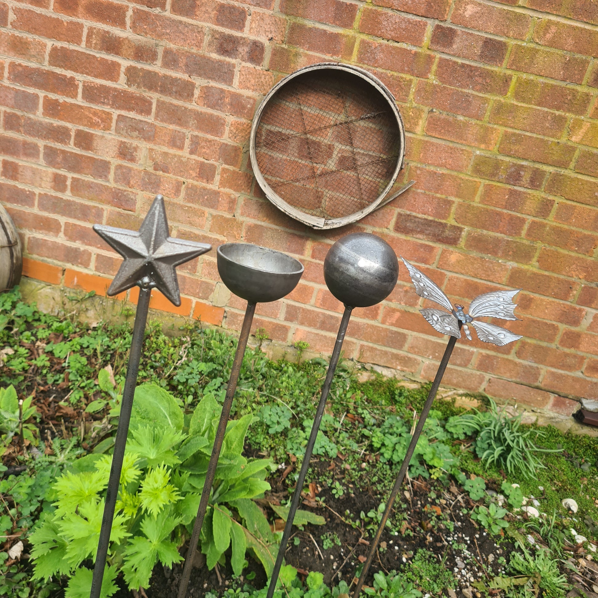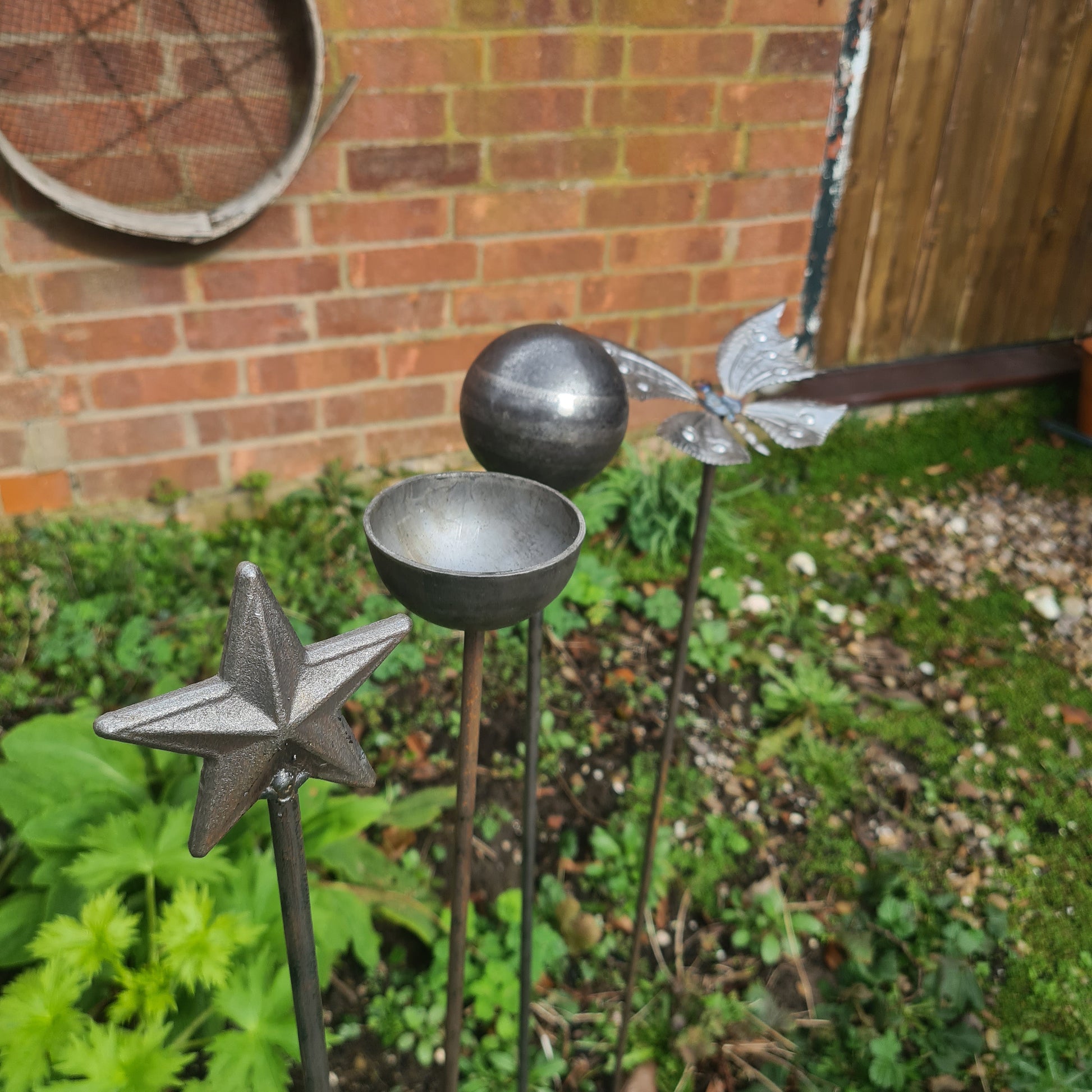 Garden Stakes Dragonfly Star Sphere Bird Feeder Water - Steel Modern Contemporary Steel Metal Wooden Industrial Style Home Garden Outdoor