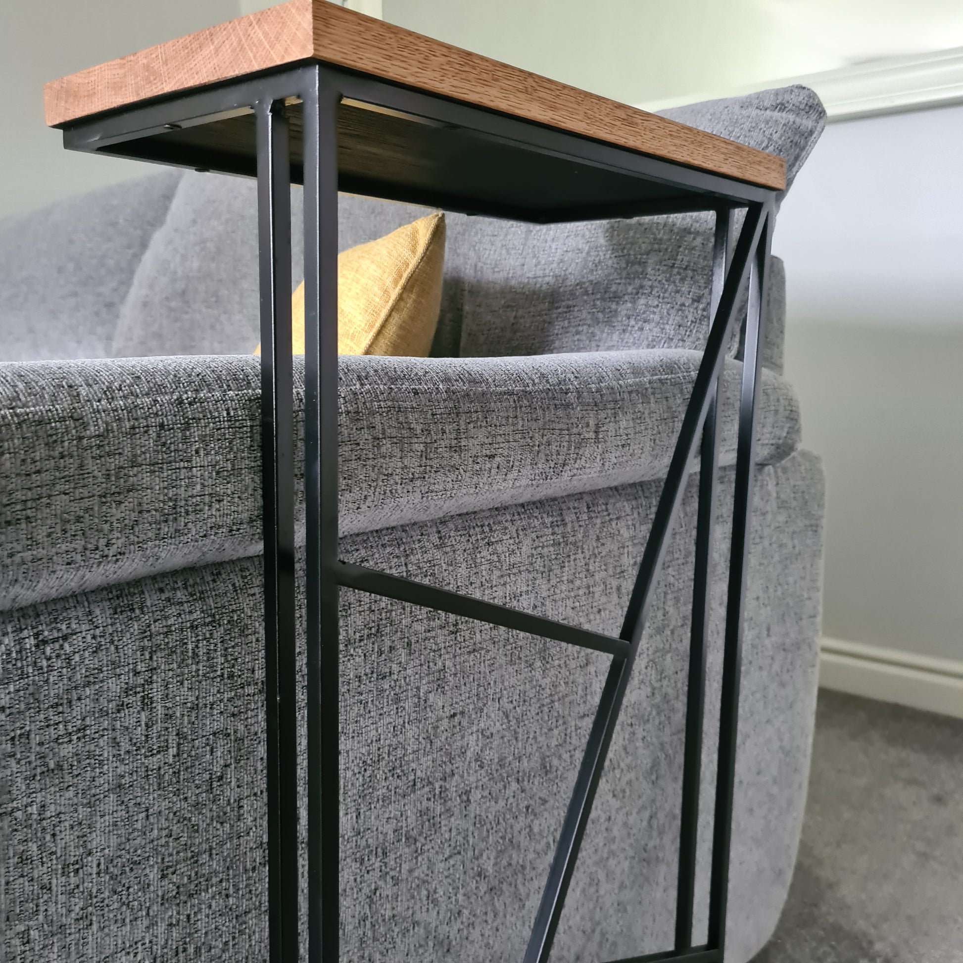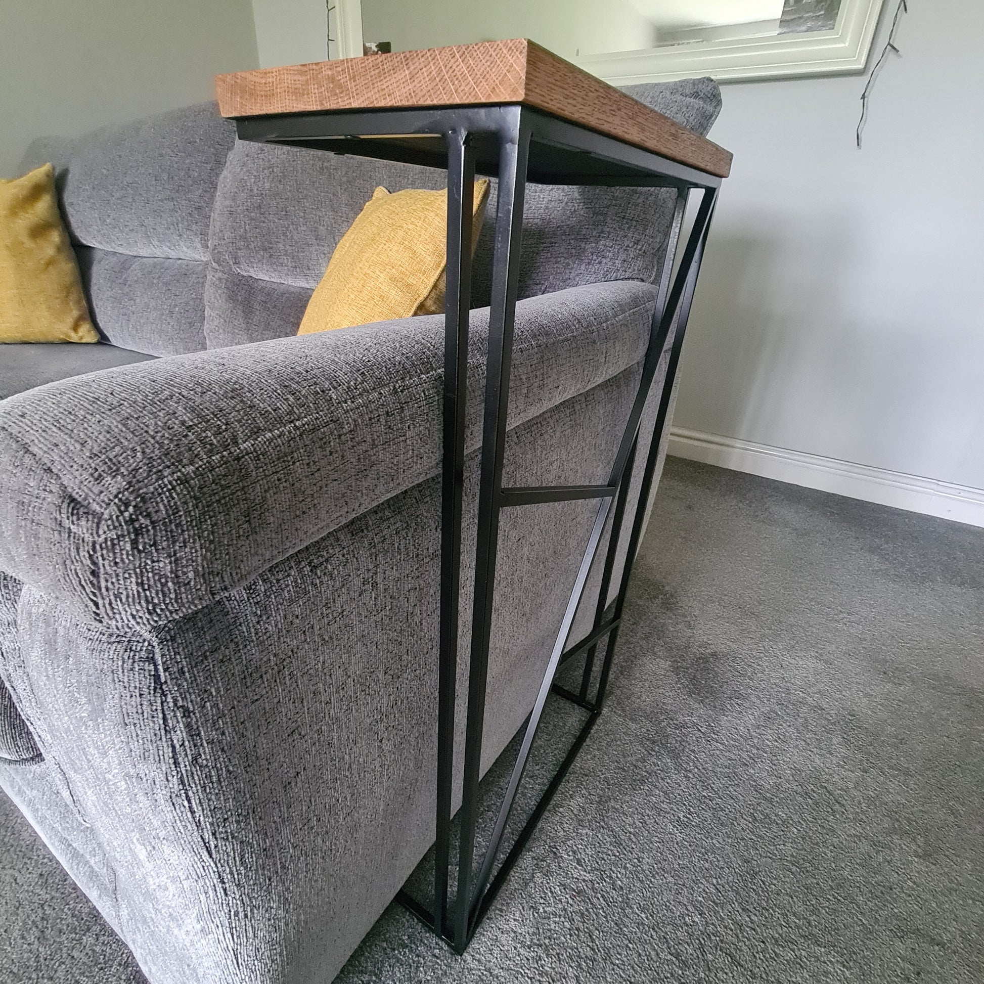 Introducing the Oak and Steel Sofa Side Table, a bespoke piece of furniture which compliments any living room.