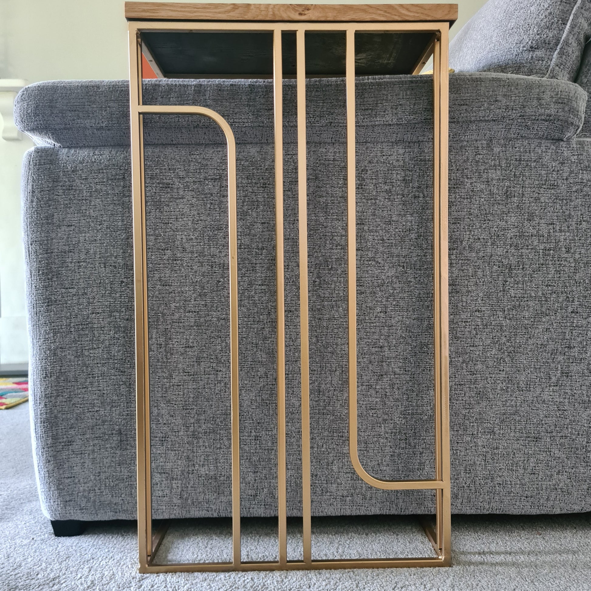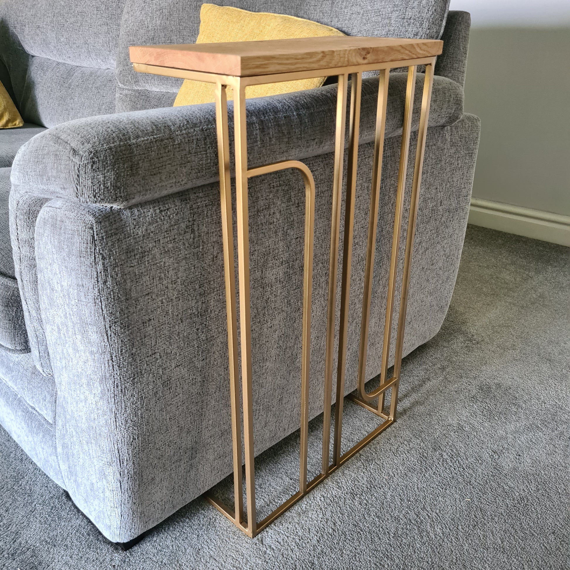 Gold Art Deco Sofa Side Table | Modern Living Room Furniture | Custom Size Settee Drink Holder | For New Home Decor | Gifts For Him her