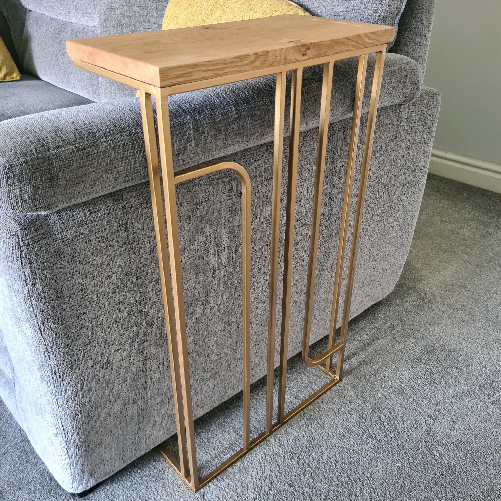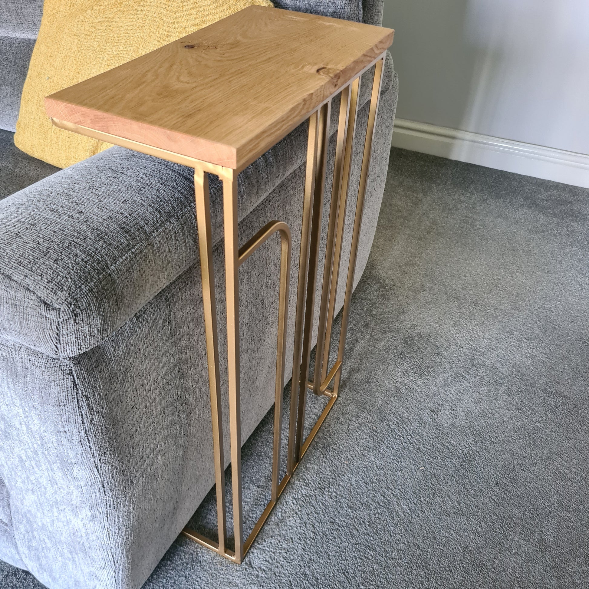 Introducing the Oak and Steel Sofa Side Table, a bespoke piece of furniture which compliments any living room.