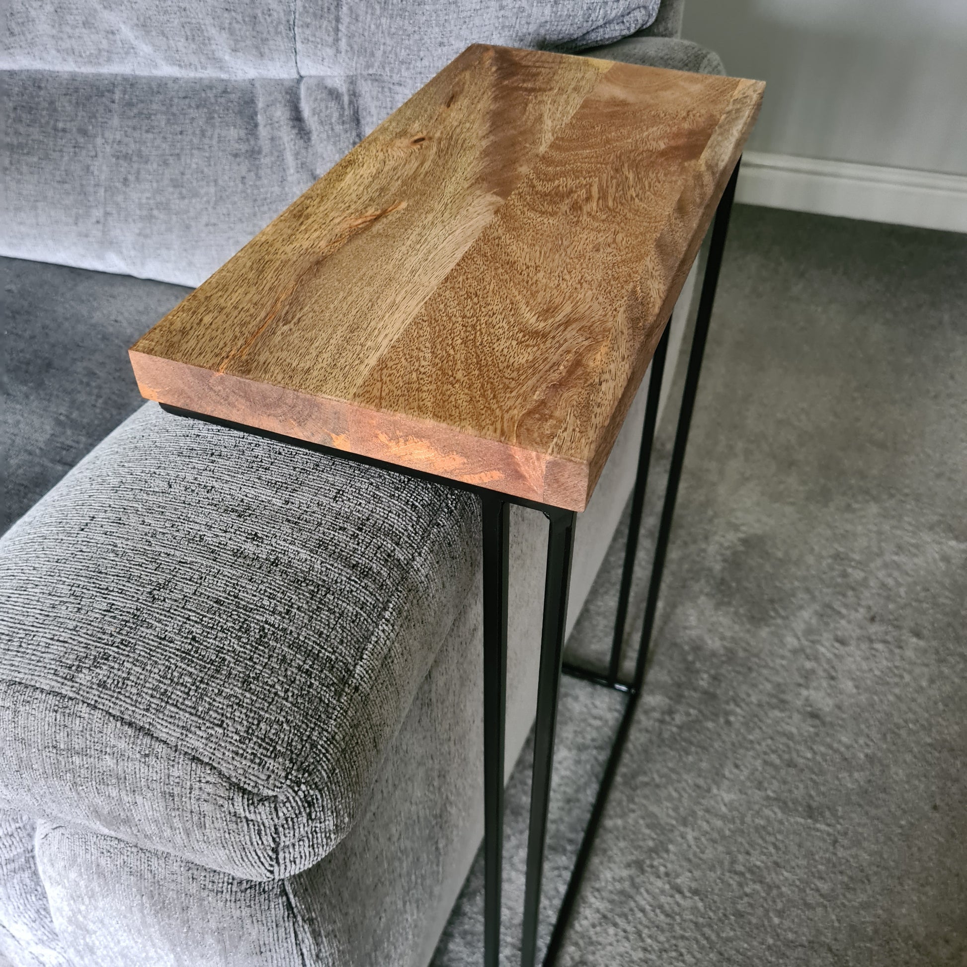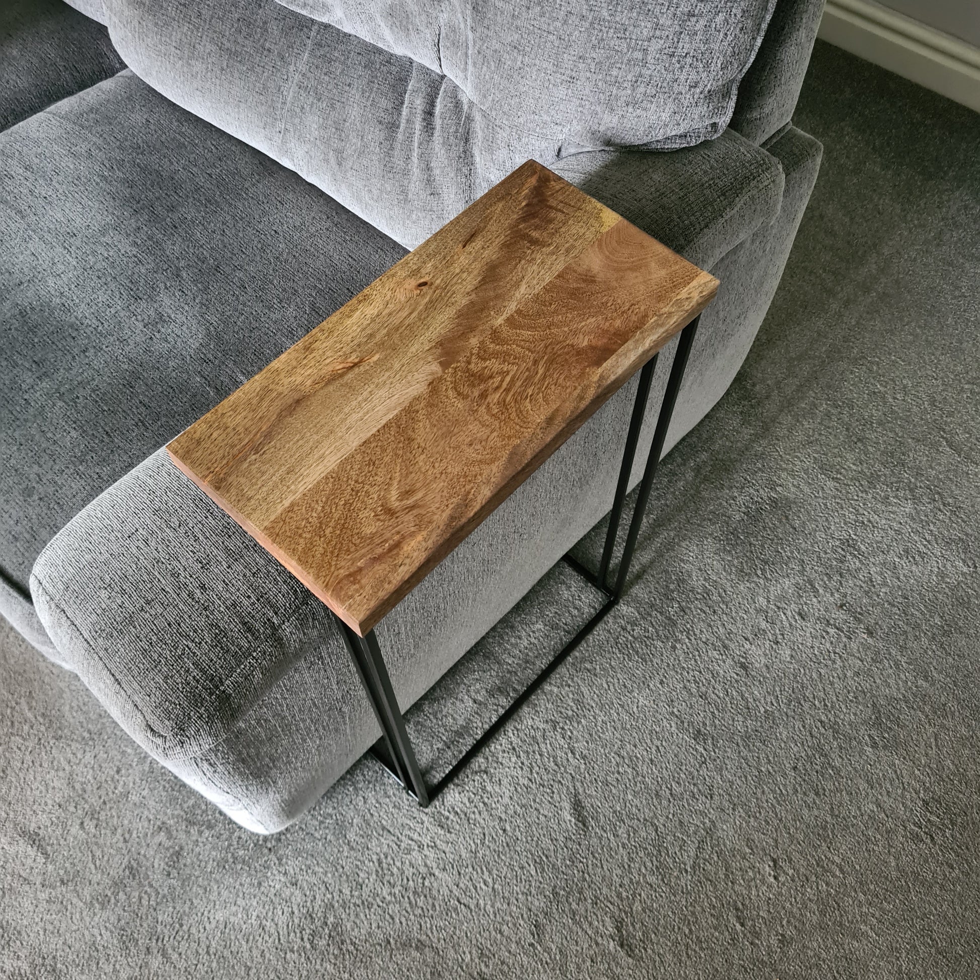 Mango Wood Sofa Side Table | Industrial Style Living Room Furniture | Bespoke Settee Drink Holder | For Home Decor interior Design