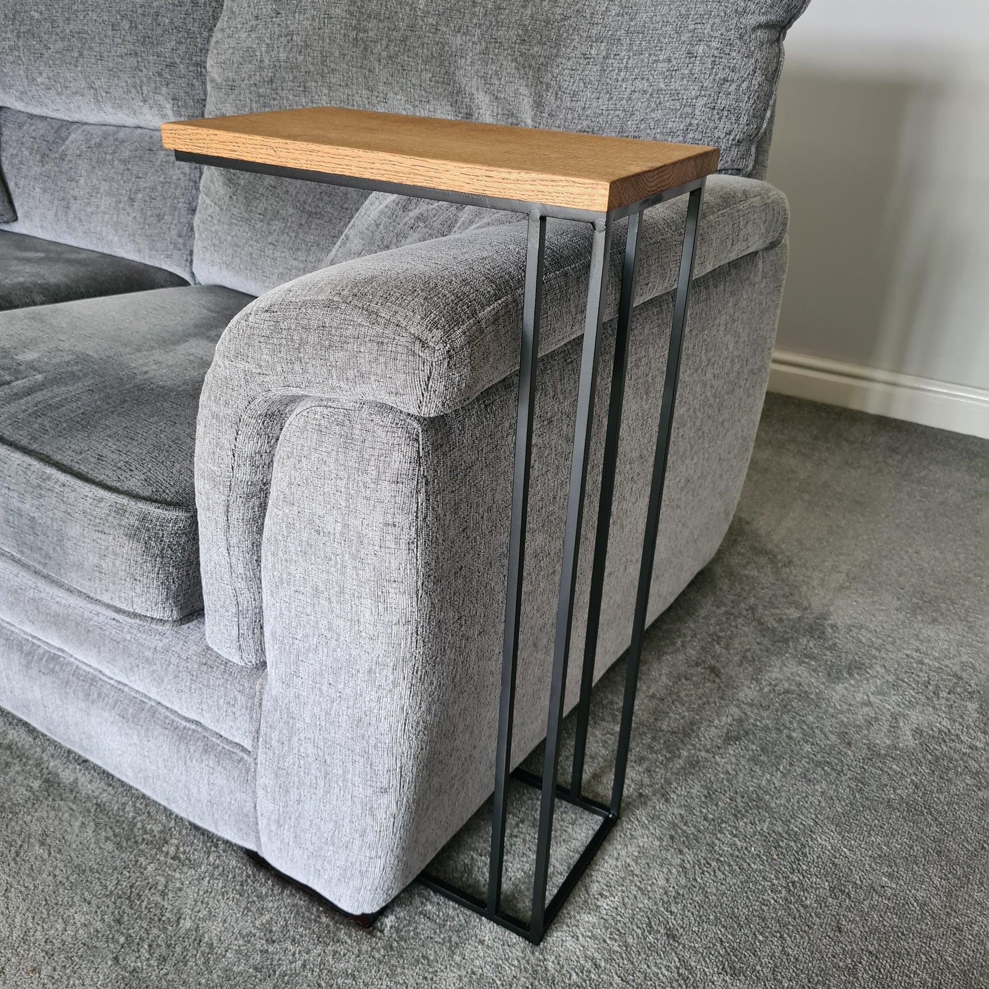 Metal Sofa Side Table | Industrial Style Living Room Furniture | Bespoke Arm Chair Drink Holder | Interior Designer Home Decor