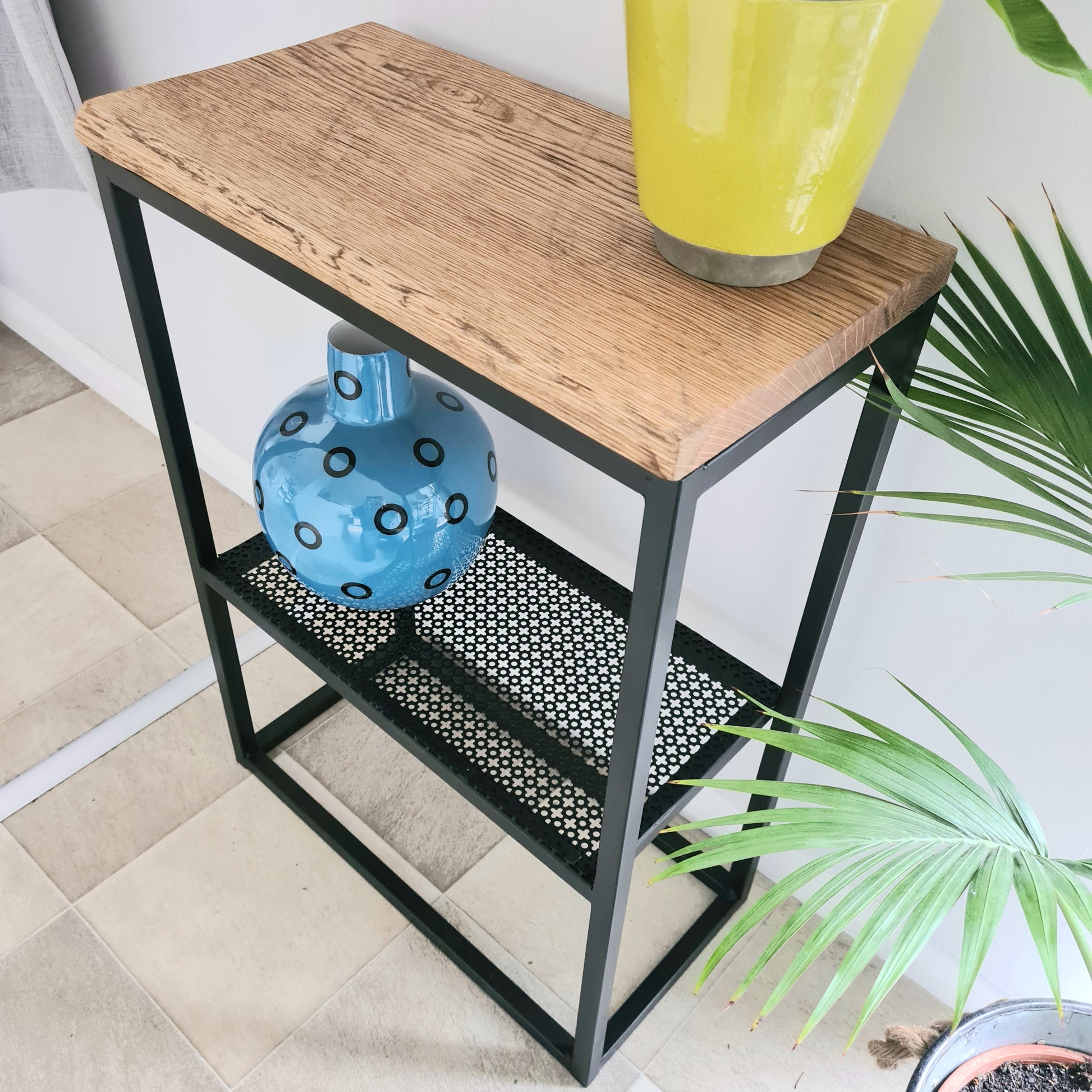 Oak and Metal Side Table | Industrial Style Living Room Hallway Furniture | Bespoke Size Side Board | For Home Interior Designer House