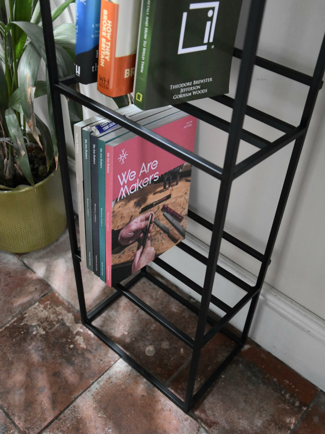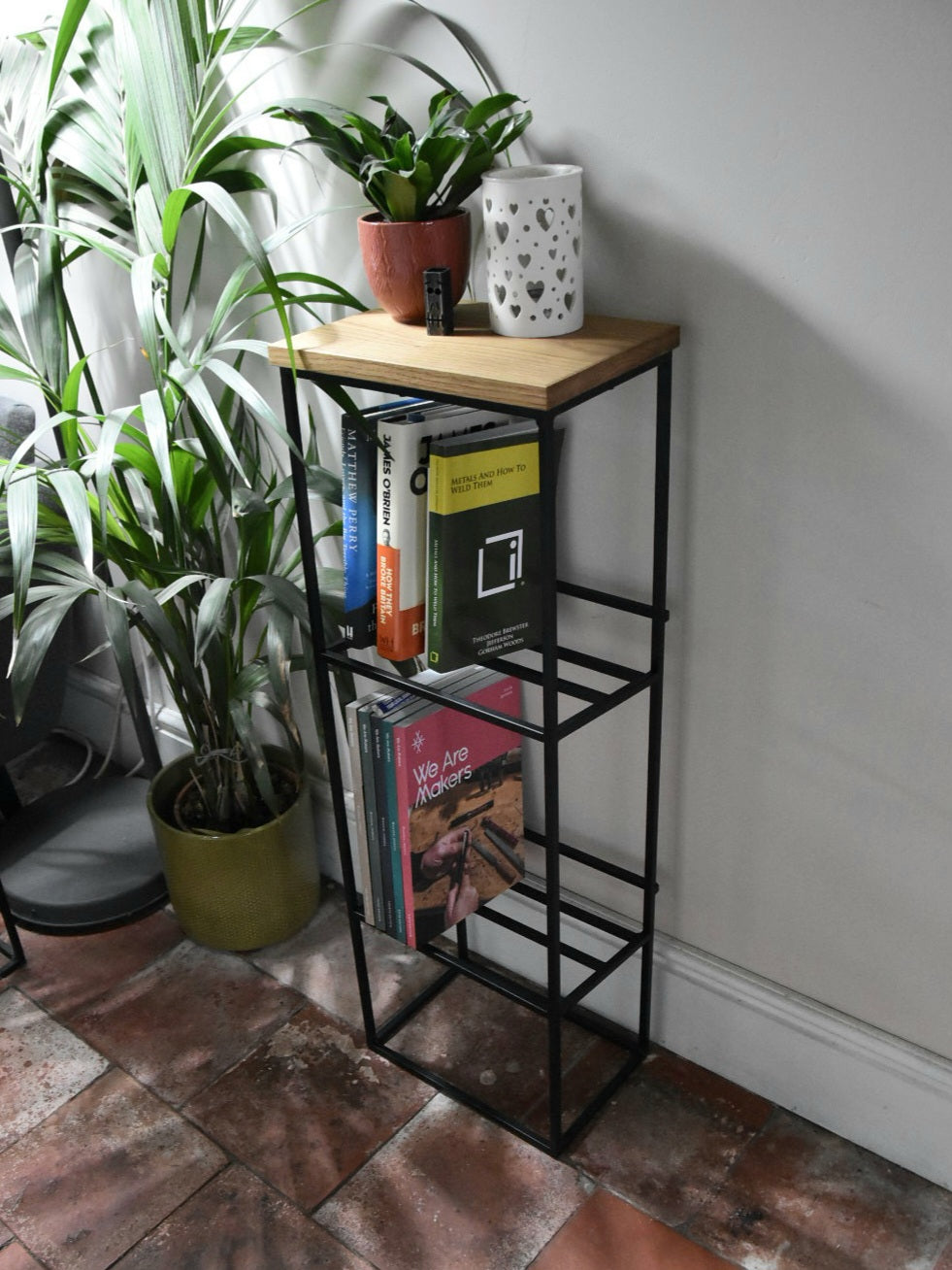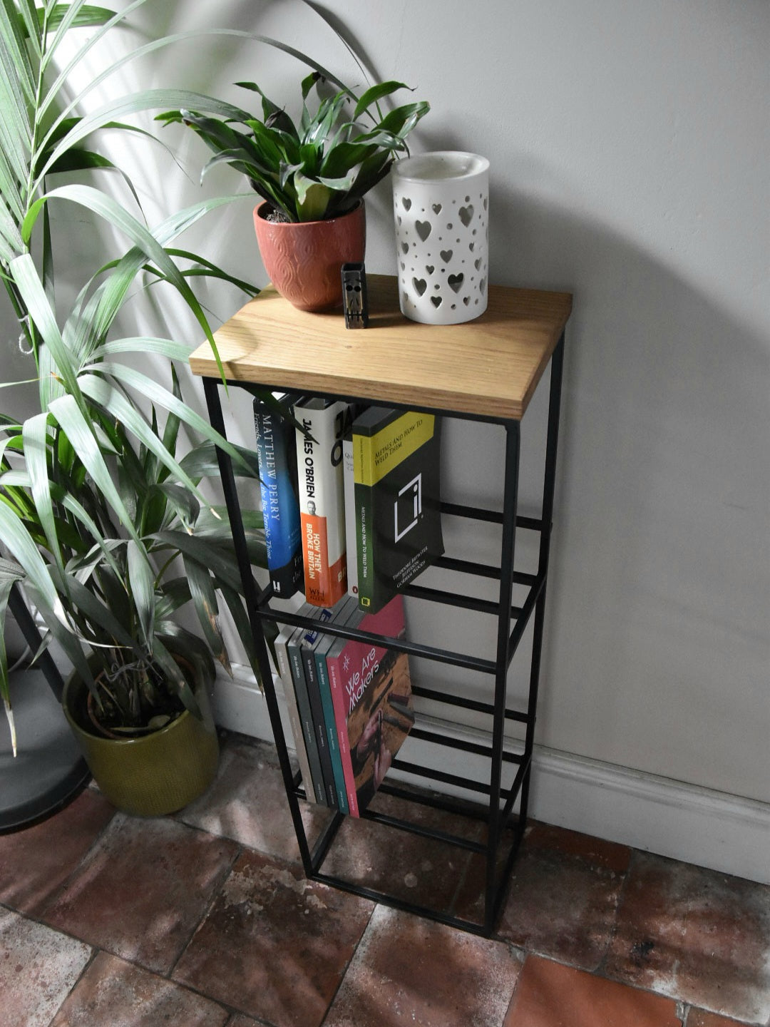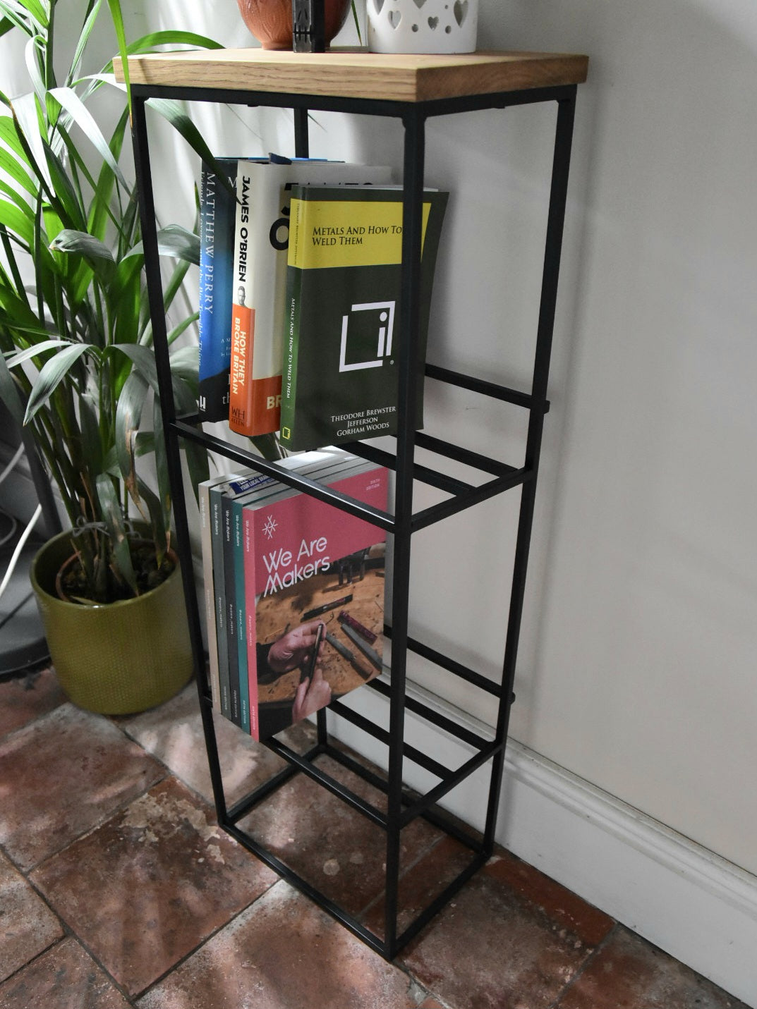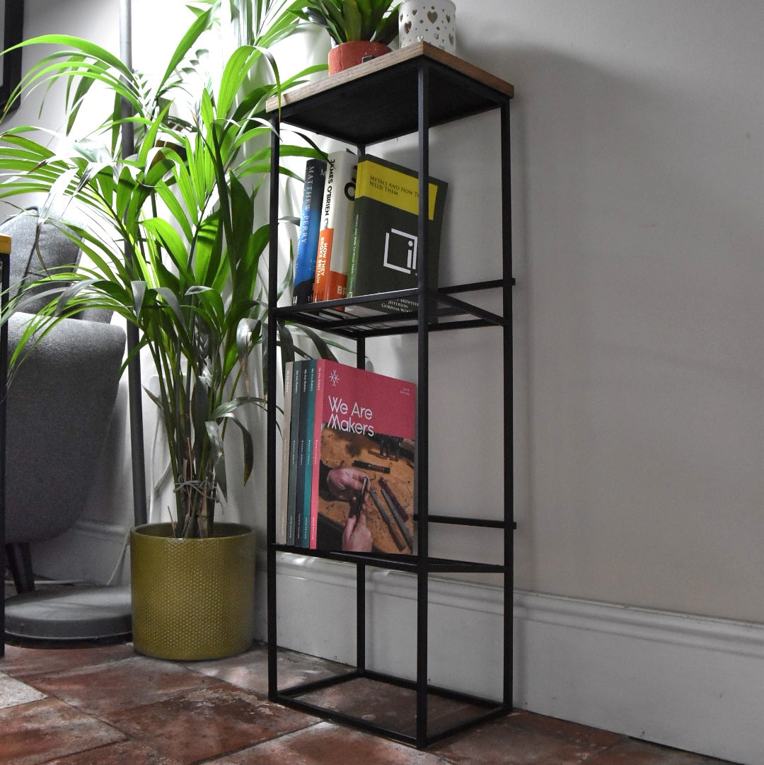 Oak and Steel Bookcase | Industrial Reading Corner Furniture | Bespoke Book Case Display | For New Home Decor Interior Design